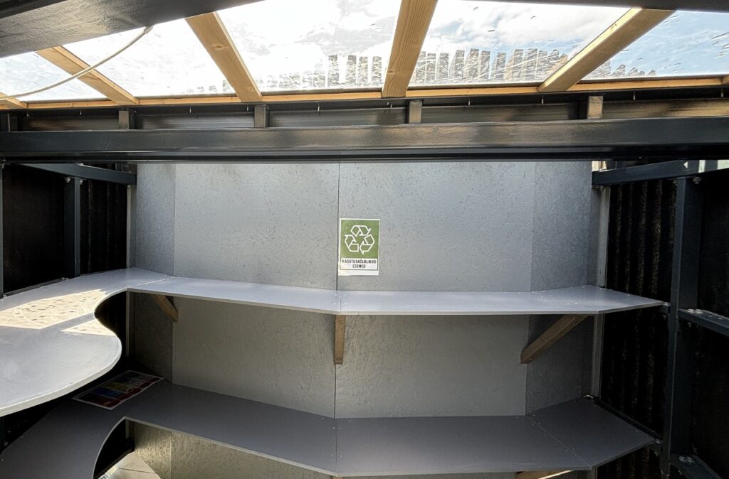 Liis Vavulski projekteeris Saku vallale kogukondliku ringlusmaja, mille suuremas ruumis on mahutid jäätmete liigiti kogumiseks. Väiksem ruum on mõeldud ringluseks, vahetuseks ja laenutuseks. Võimalusi ruumi kasutamiseks on palju: raamatute, kodutarvete, nõude vms vahetamine, tööriistade laenutamine (kas kõigil peab olema oma isiklik akutrell või hekilõikur?!) või mõni muu piirkonnale/kogukonnale sobiv ringluslahendus. Teate ju küll seda tunnet, et mõni asi on kohe liiga ilus, et ära visata, aga enda kodus sellele kohta ei leia. Nüüd ei pea neid esemeid enam prügikasti kõrvale panema, vaid nendele on täitsa oma ruum uue omaniku ootamiseks.