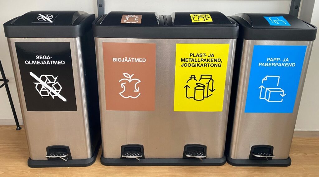 Saku vallavalitsus kogub liigiti – korjasime kontorilaudade alt ära olmeprügi korvid ning oma jäätmeid saab liigitada köögis. Vallamajas kogume eraldi biojäätmeid, paberit ja kartongi, klaaspakendit, plast-, metall- ja tetrapakendit ning pandipakendit. Lisaks sellele kogume kokku ka vanad patareid, elektroonikajäätmed ja ohtlikud jäätmed.