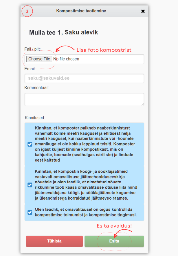 Jälgige vormi täitmise kulgu! Taotlus on esitatud korrektselt siis, kui saate teate: “Vorm on saadetud. Vormi saaja nimi: Saku vallavalitsus” ja teie e-posti aadressile laekub kinnituskiri.